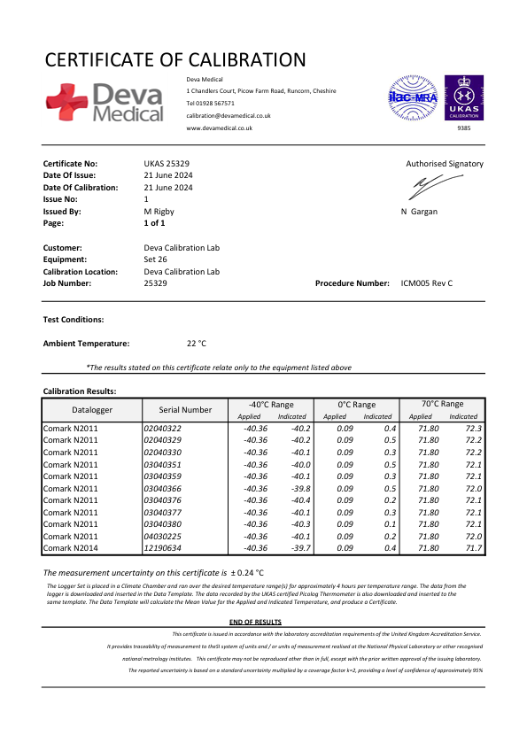 Temperature Mapping Reference Equipment ISO 17025 UKAS Certificates 2024