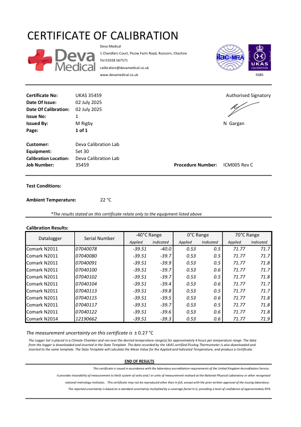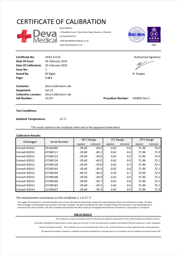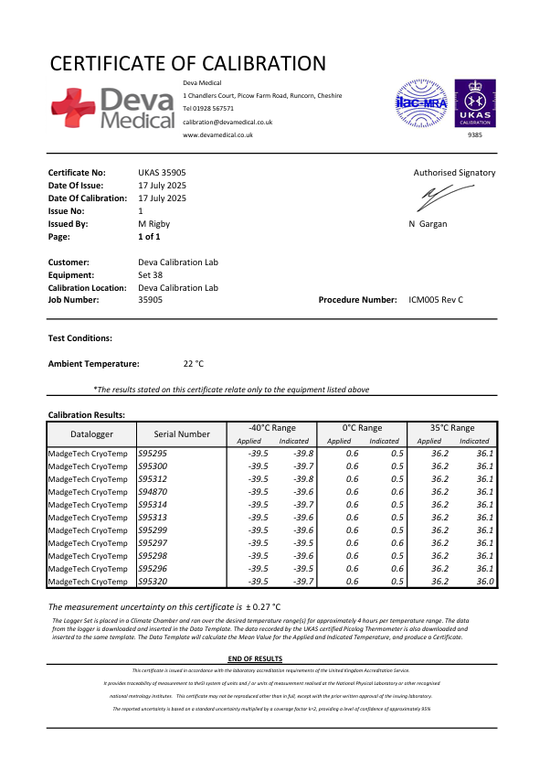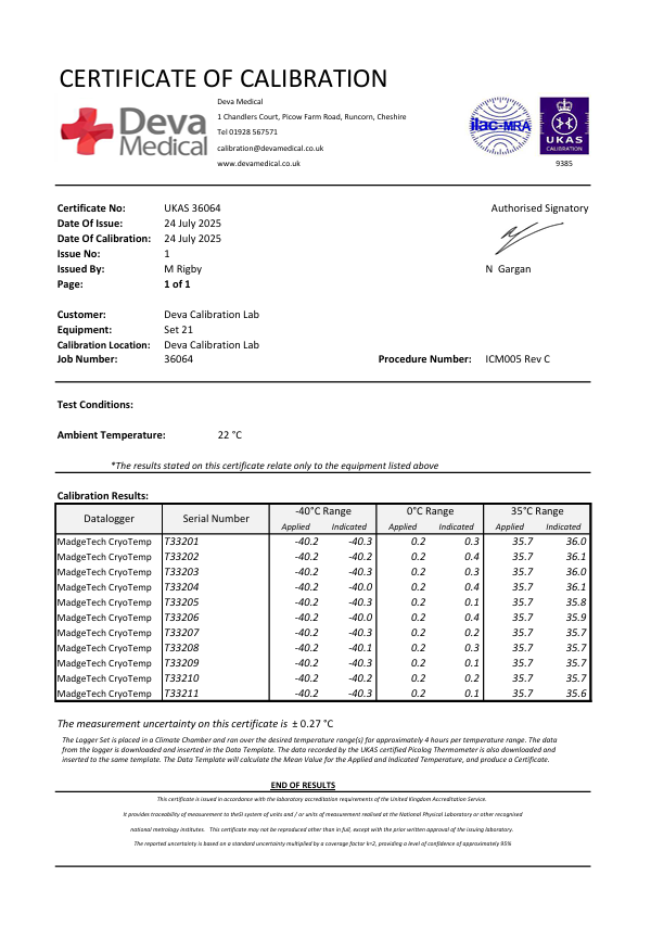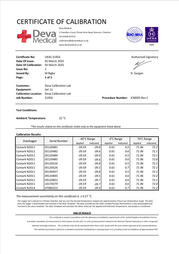 Temperature Mapping Reference Equipment ISO 17025 UKAS Certificates 2025